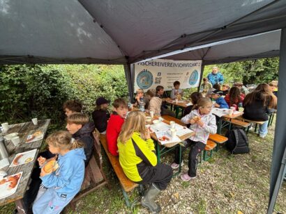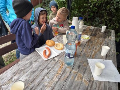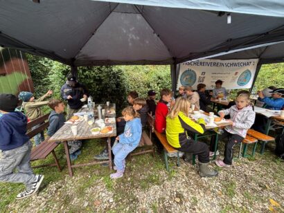 Auch für das leibliche Wohl war bestens gesorgt. Bei einer gemütlichen Mittagspause stärkten sich alle gemeinsam mit Frankfurter Würstchen, Schinkensemmeln und erfrischenden Getränken, bevor es mit neuer Energie weiterging. Zwischendurch brachte ein lustiges Angelquiz zusätzlich Spannung – hier konnten die Kinder spielerisch ihr Wissen unter Beweis stellen. 📝✨